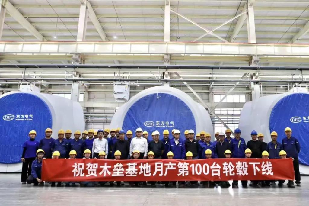 为保障项目顺利交付,9月26日,东方风电新疆木垒基地月产第100台风机轮毂顺利下线,创造了东方风电生产基地单月最大产出纪录。截至9月29日,该项目已完成40台风机吊装工作,完成率达32.2%;完成项目集电线路基础开挖工作共计788基,完成率达94%;220千伏汇集站也全面进入设备安装调试阶段。