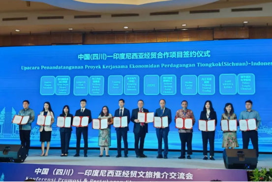 调研前,中国(四川)—印度尼西亚经贸文旅推介交流会在雅加达举行,人生就是搏(印尼)有限公司参加推介会并与当地伙伴在会上签署项目合作协议。